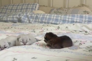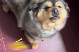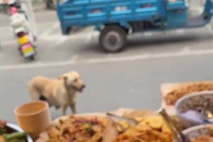 狗妈妈来到肉摊前讨食,老板毫不犹豫拿出三个鸡腿投喂