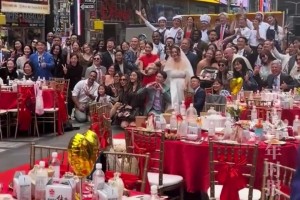 男子在国外看到中式喜宴,竟直接办在了纽约时代广场